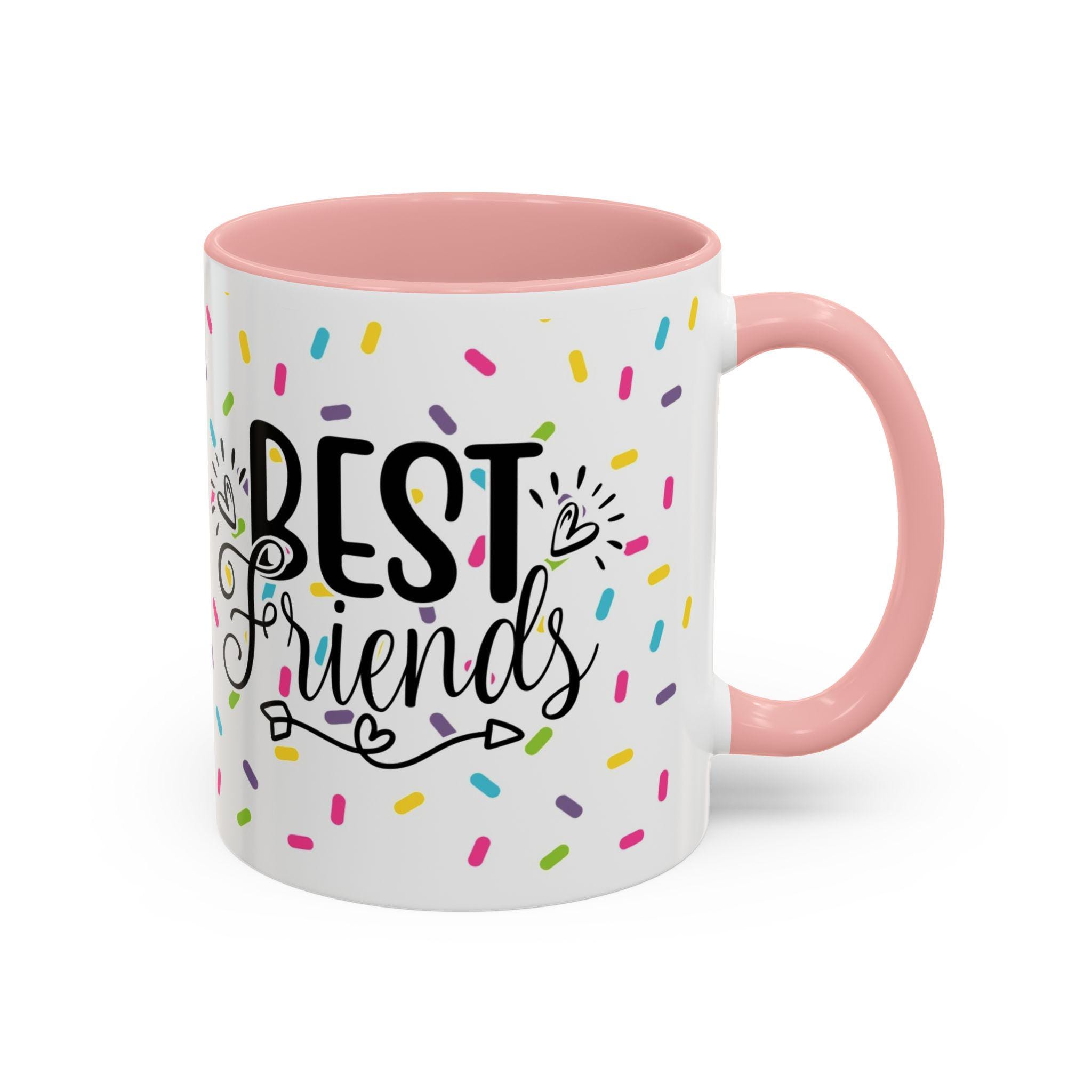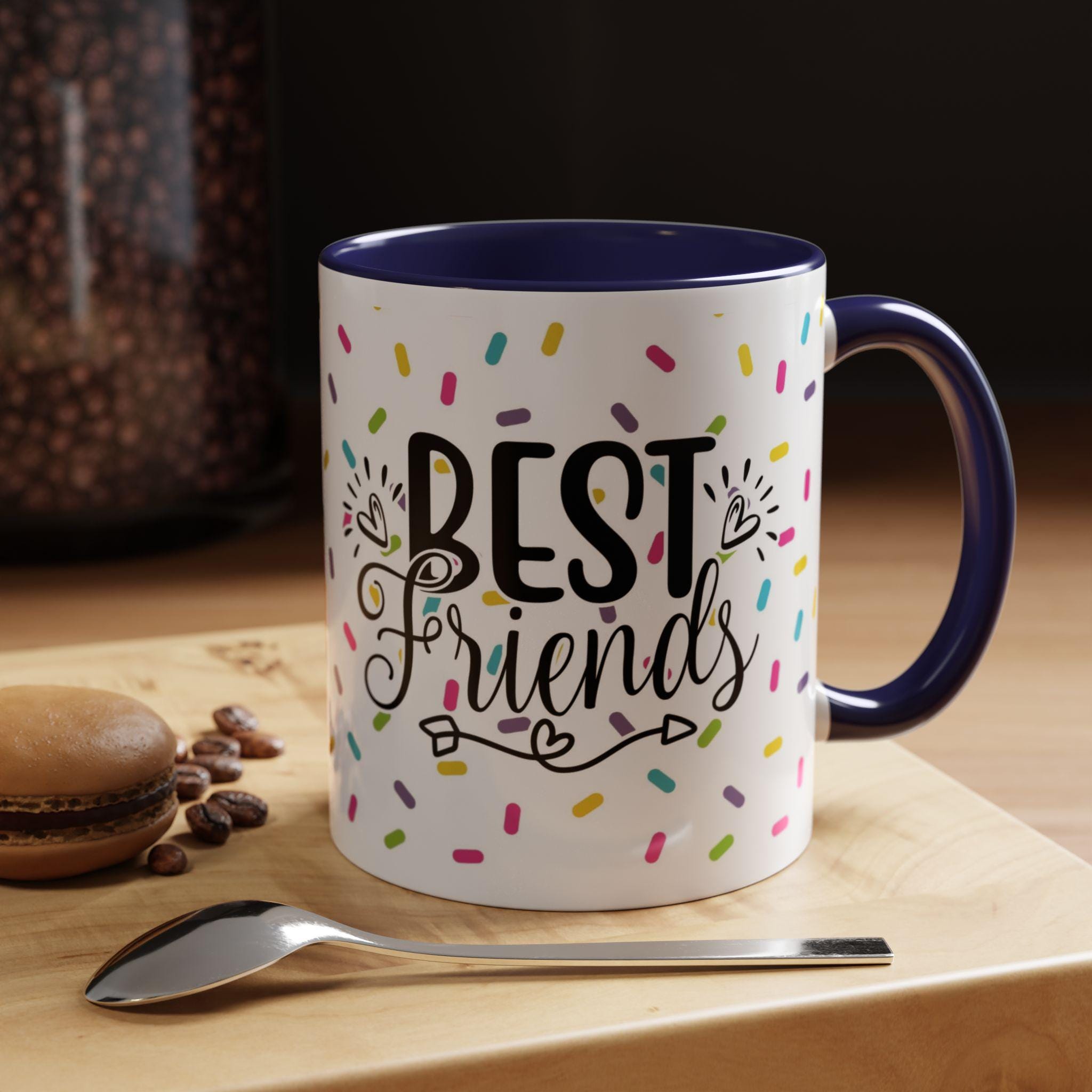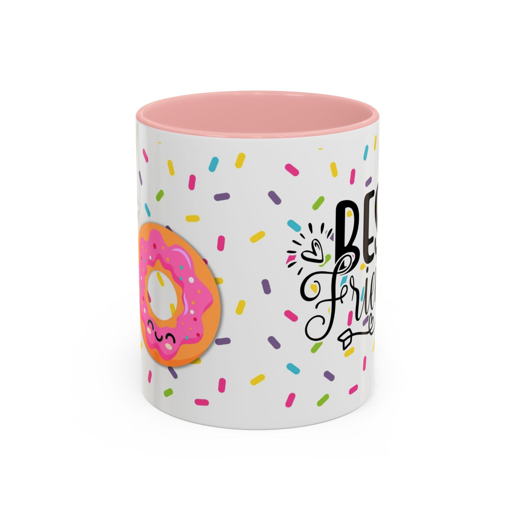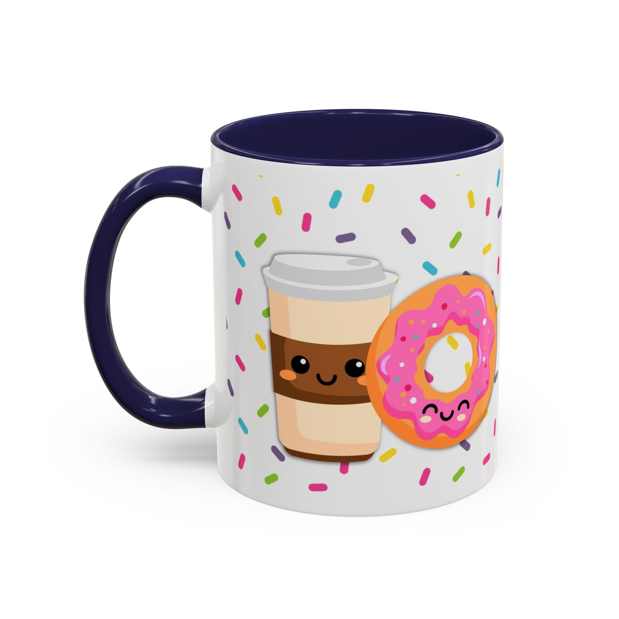 Bright, cheerful ceramic mug that brings a little celebration to everyday coffee and tea. A glossy white exterior is sprinkled with colorful confetti and a playful doughnut illustration, while the contrasting interior and handle add a pop of personality. Warm drinks feel friendlier in this weighty, comfortable C-shaped cup — the kind you reach for when you want to share a smile, swap stories, or toast a small victory. It sits happily on a desk, kitchen shelf, or bedside table, and becomes a quiet reminder of close friendships during slow mornings and late-night chats.
