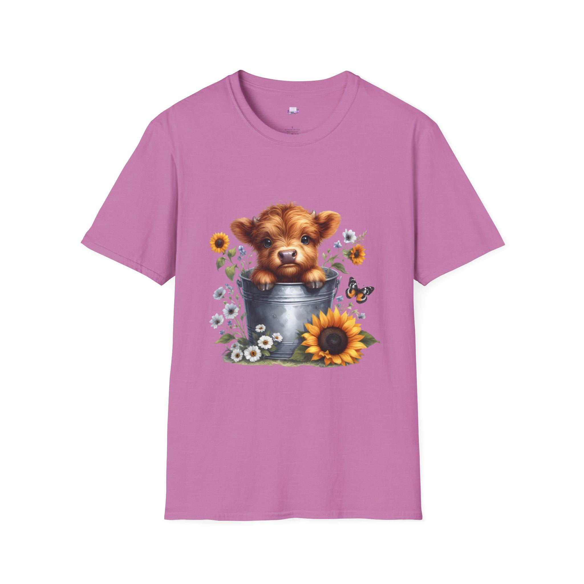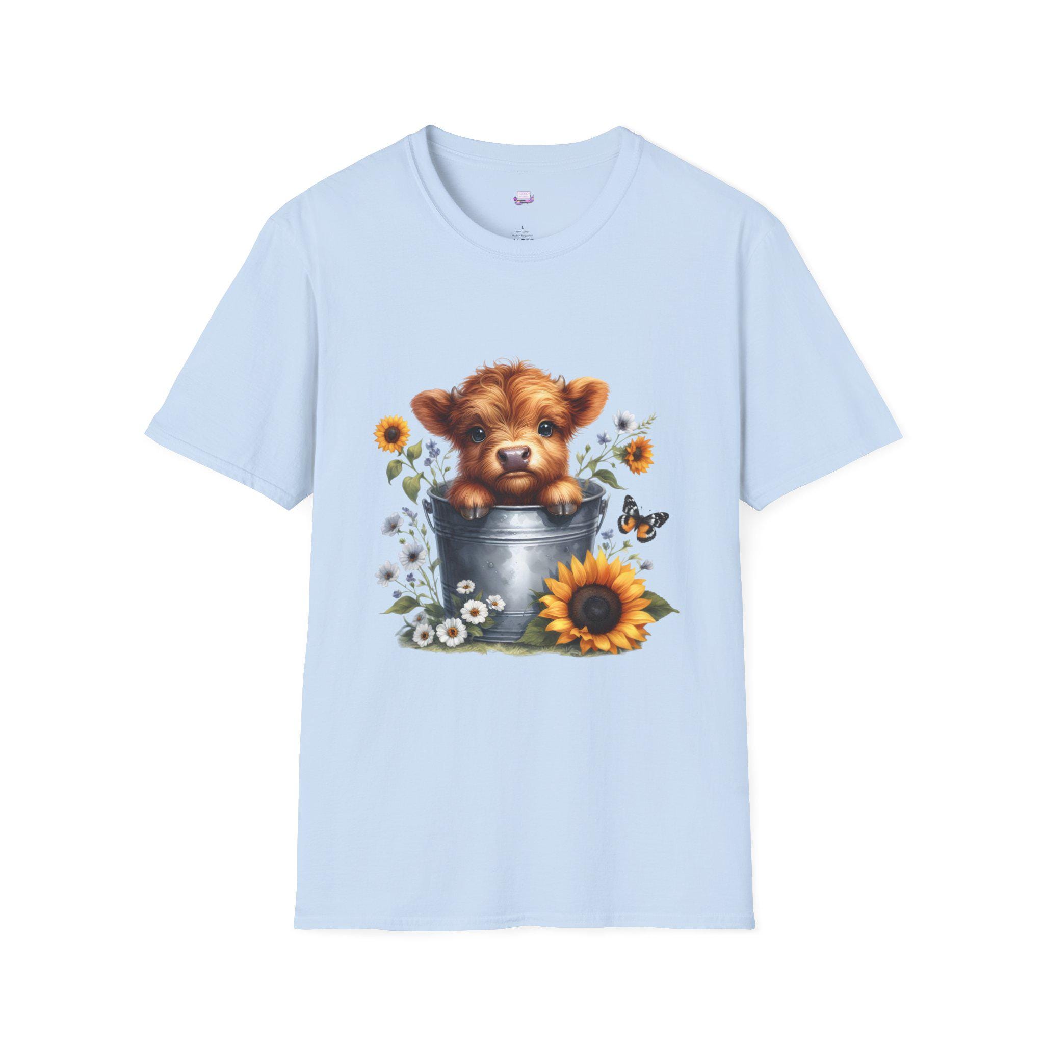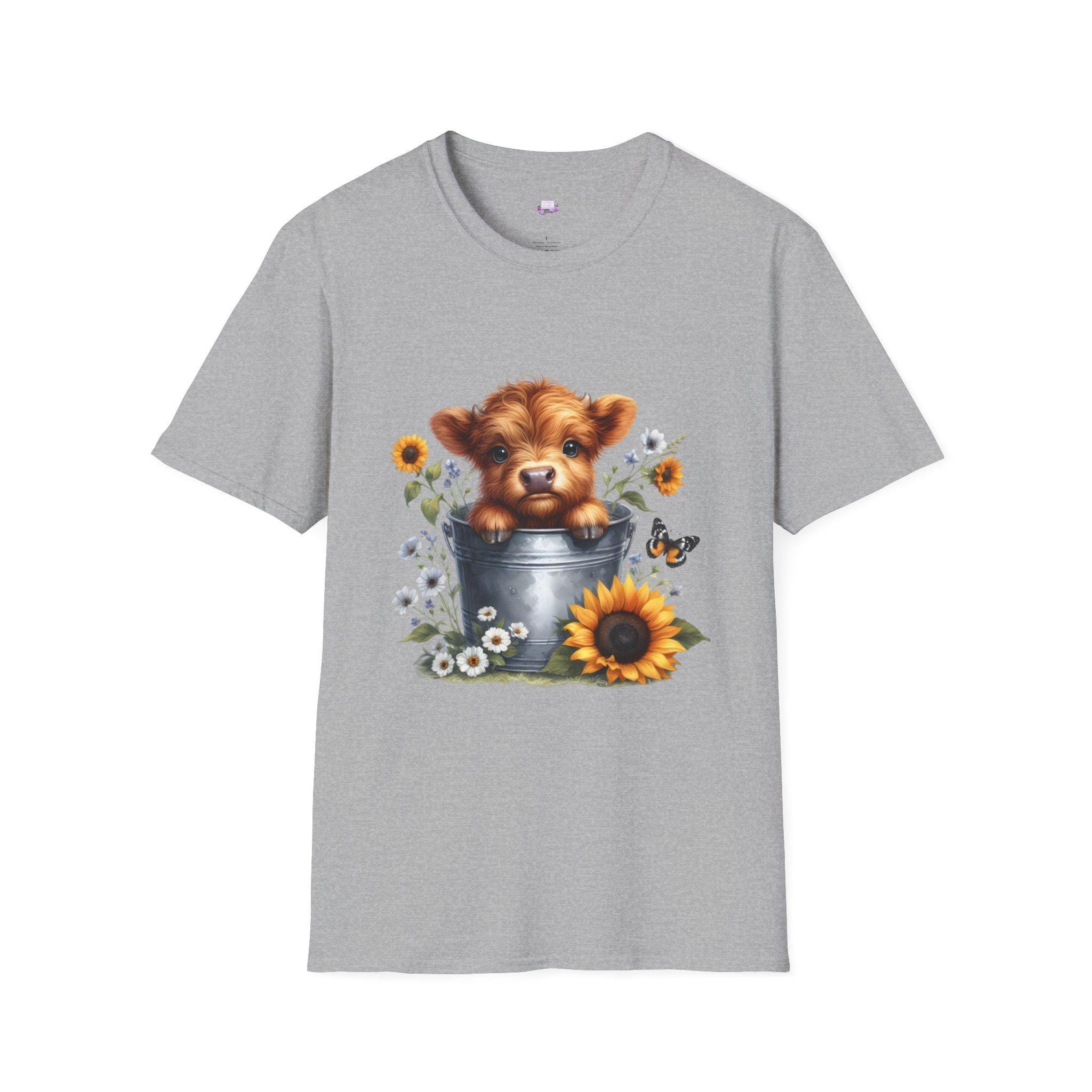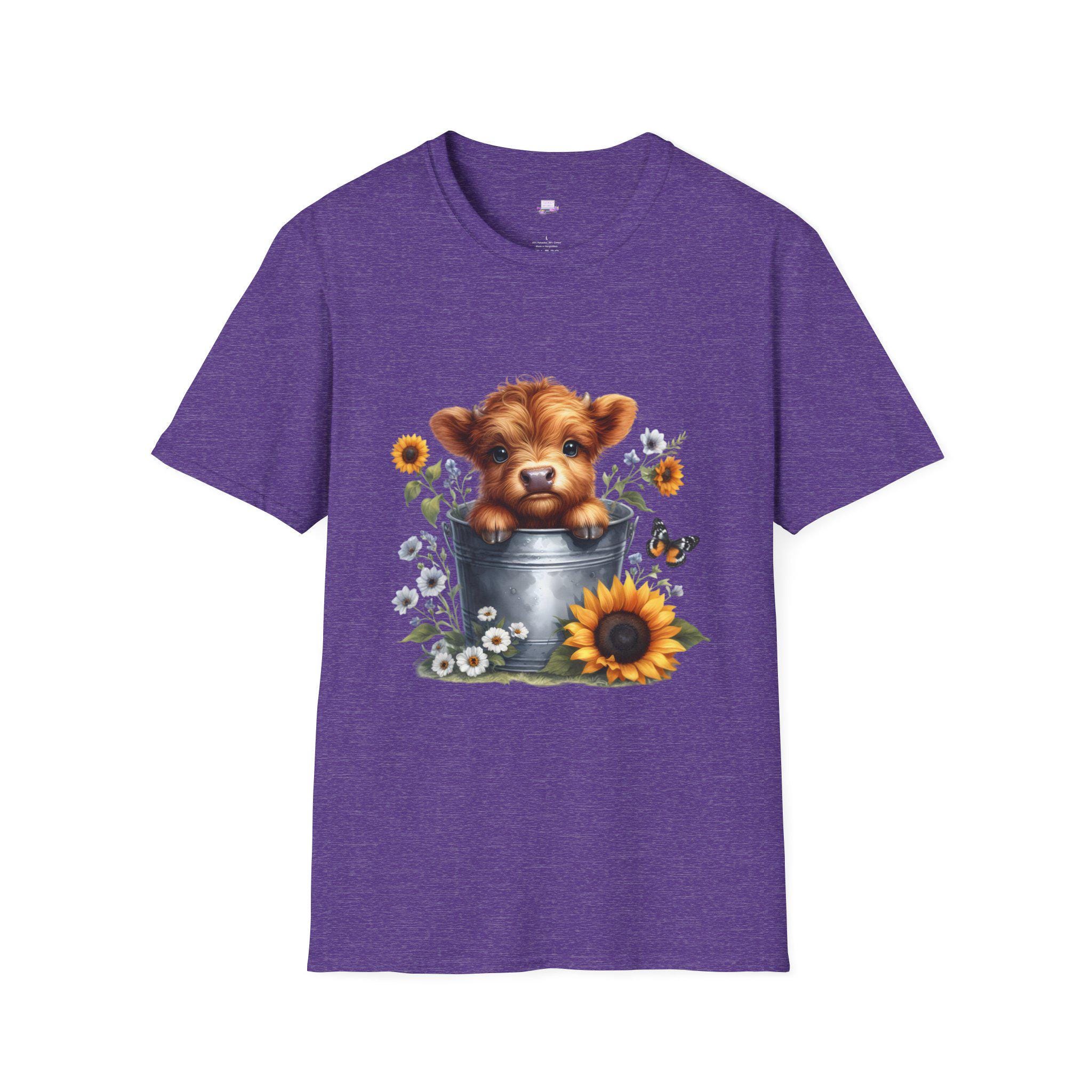 A soft, breathable tee that brings a warm slice of countryside charm to everyday wear. The lightweight cotton feels gentle against skin while the illustration — a wide-eyed calf peeking from a galvanized bucket surrounded by sunflowers and daisies — adds a quietly joyful, rustic touch. Wear it on slow mornings at the farmers’ market, while tending garden beds, or whenever you want to carry a little pastoral calm through the day. The classic crew cut and clean lines make it easy to layer under a cardigan or wear on its own with jeans or overalls.