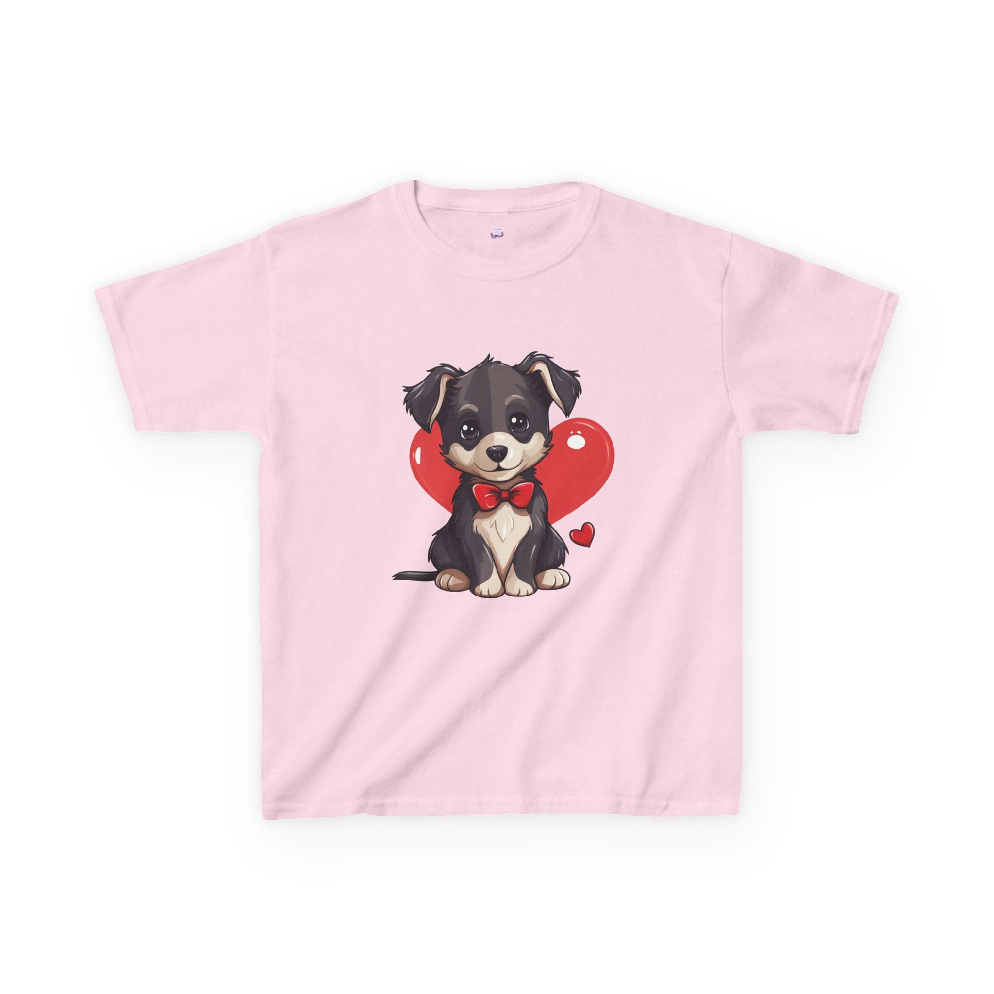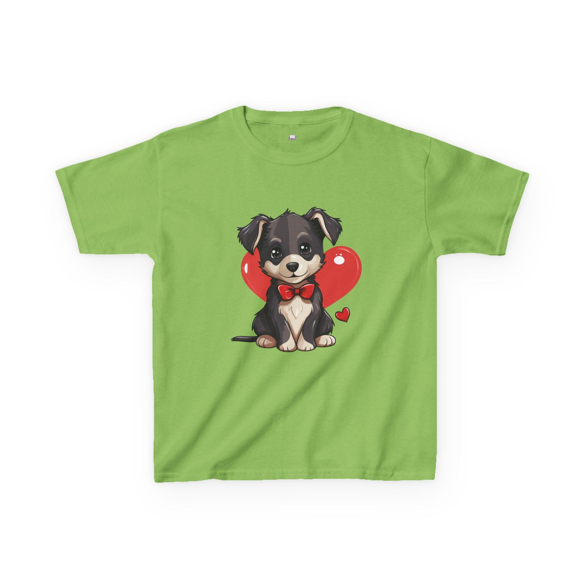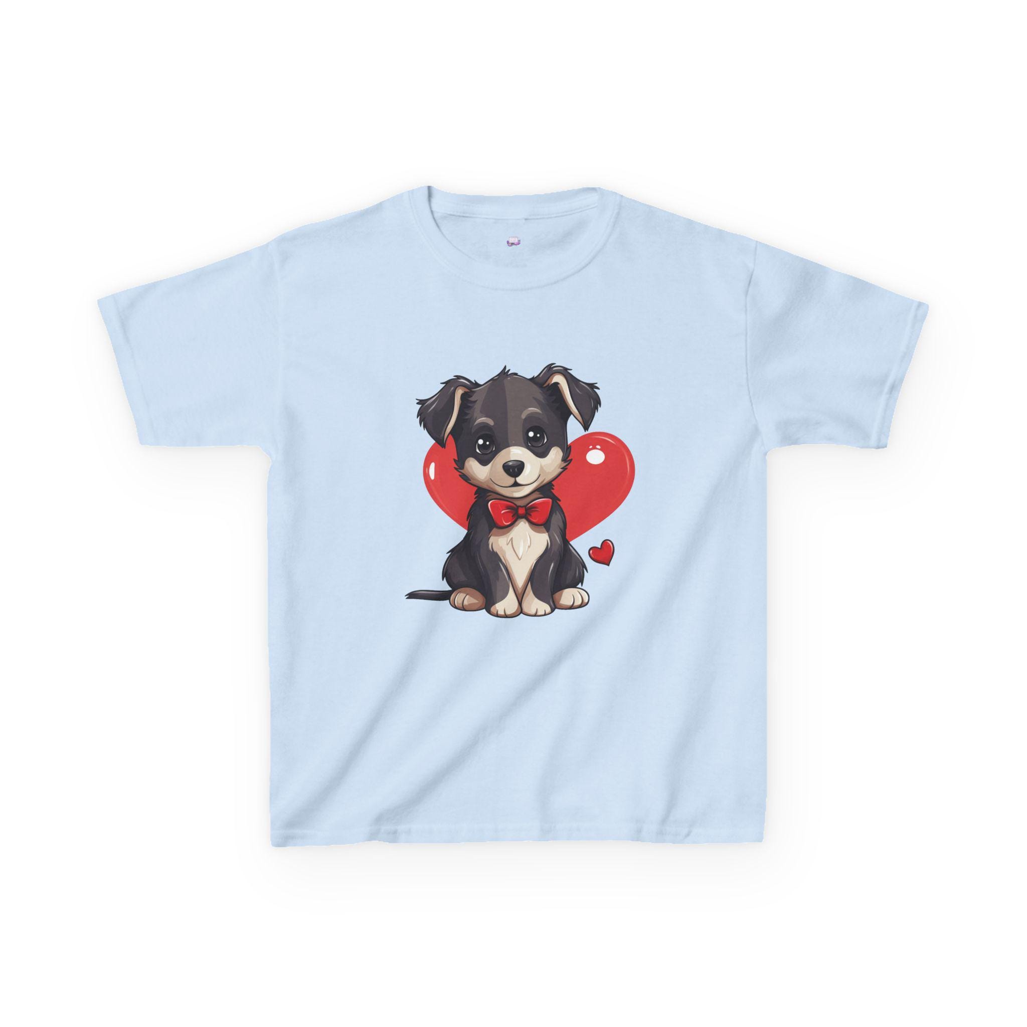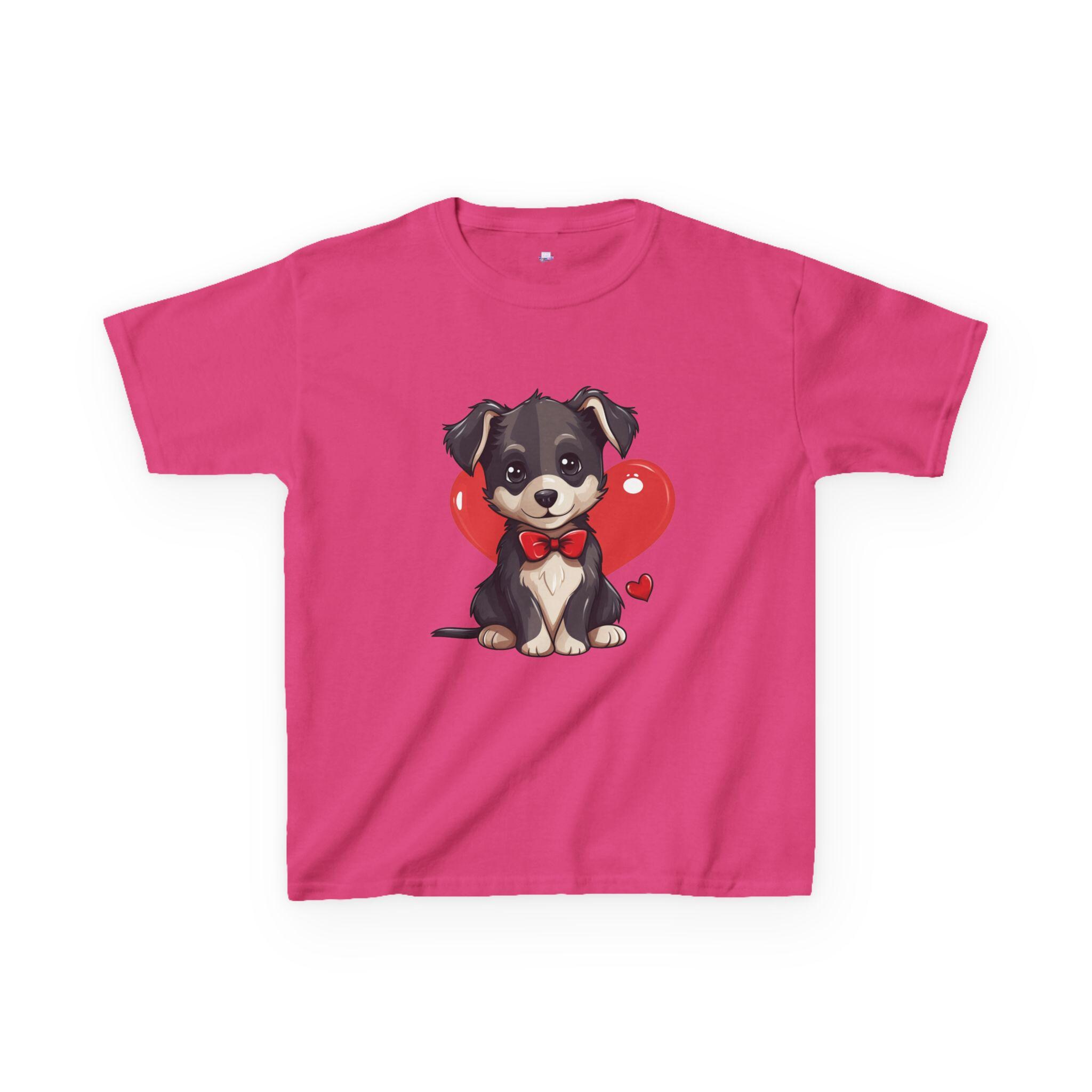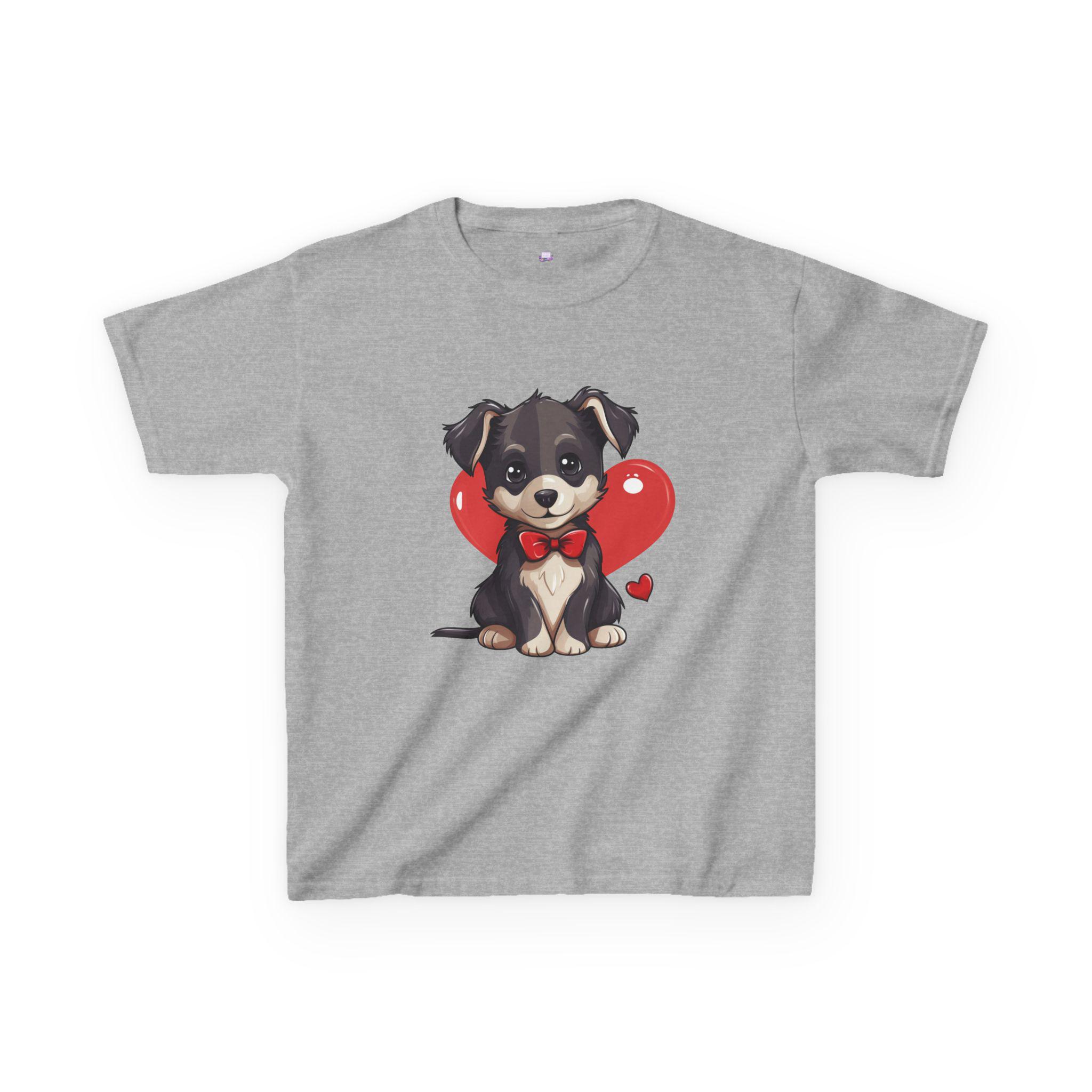 A soft, midweight kids tee featuring an adorable puppy illustration with a heart-shaped balloon. Lightweight yet durable, the shirt wears comfortably through playdates and naps. The crew neck and classic cut give it a familiar, easy-to-wear silhouette that layers well under jackets or stands alone on warmer days. The sweet, whimsical design brings a warm, affectionate vibe — the kind of shirt that sparks smiles and invites hugs. Ethically sourced US cotton and quality printing keep the image bright wash after wash, so the little one’s favorite stays in rotation longer.