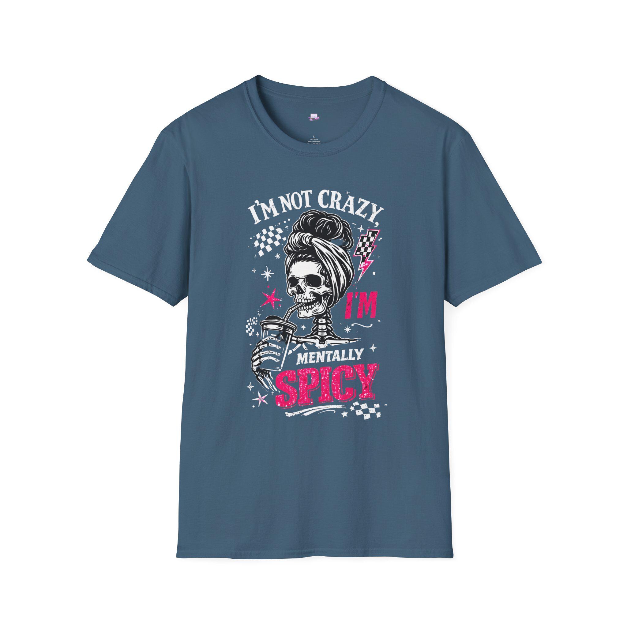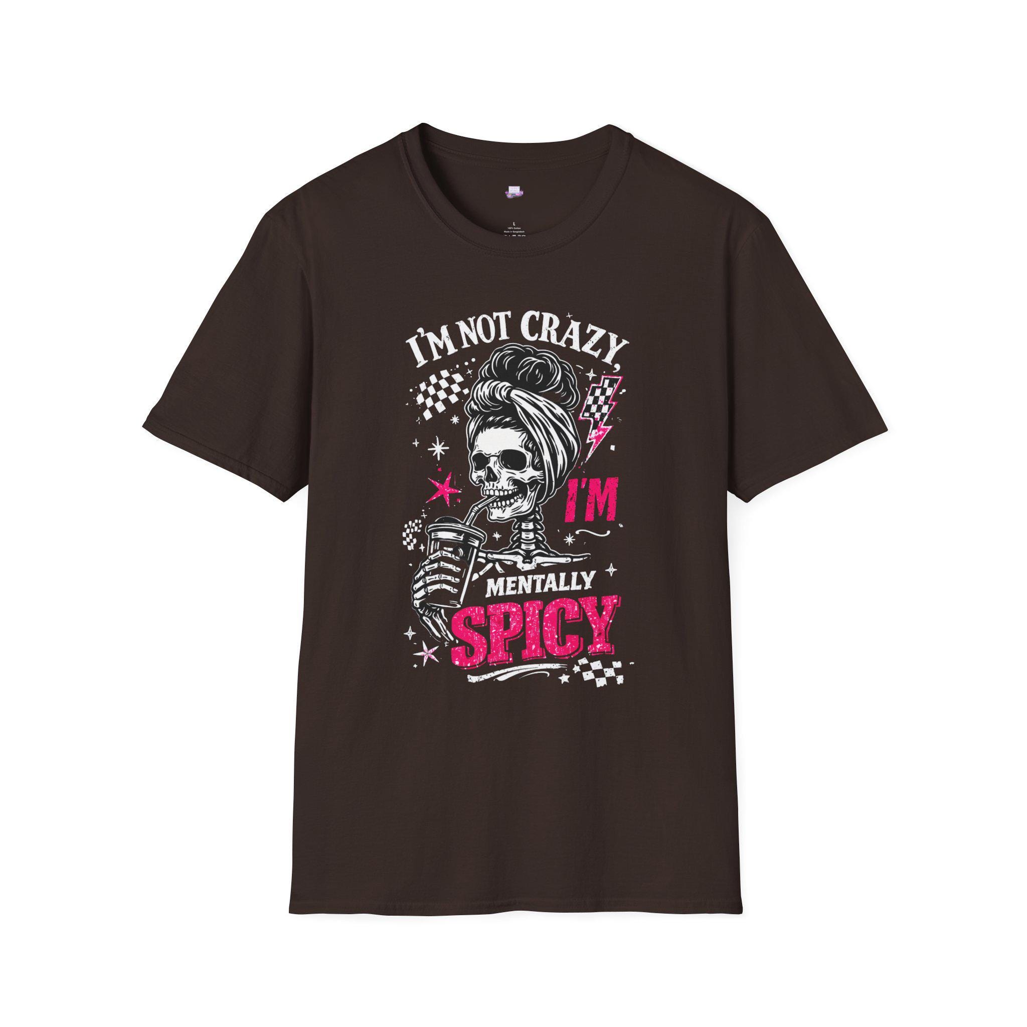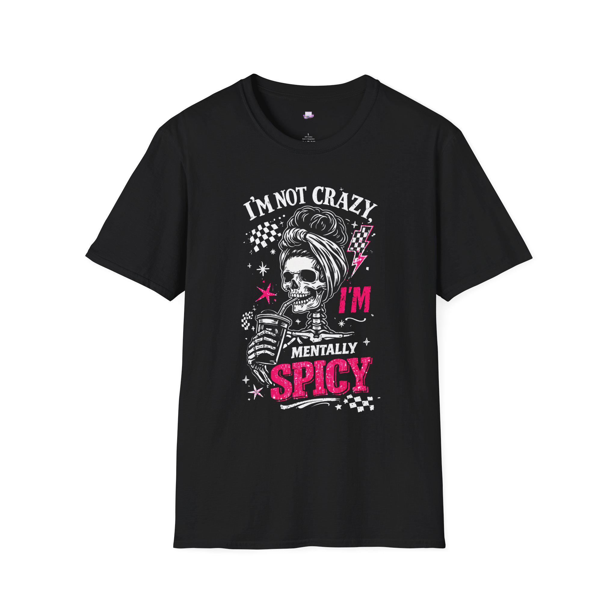 A bold, tongue-in-cheek tee that wears its attitude loud and proud. The graphic mixes vintage pin-up energy with punk skull art and cheeky typography — bright pops of hot pink and distressed white on a deep black field. It reads like a wink and a dare: confident, slightly wicked, and playfully rebellious. Lightweight and soft against the skin, this shirt slides into mornings when you need a little extra edge, nights out when the music is loud, or casual hangs where jokes and sass run the conversation. It looks at home under a leather jacket, paired with ripped jeans, or layered beneath an open flannel. Wear it when you want to signal humor and boldness without saying a word.