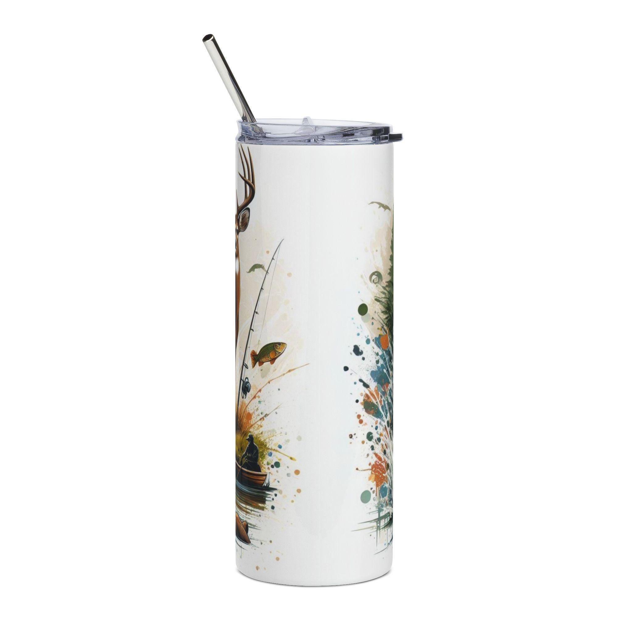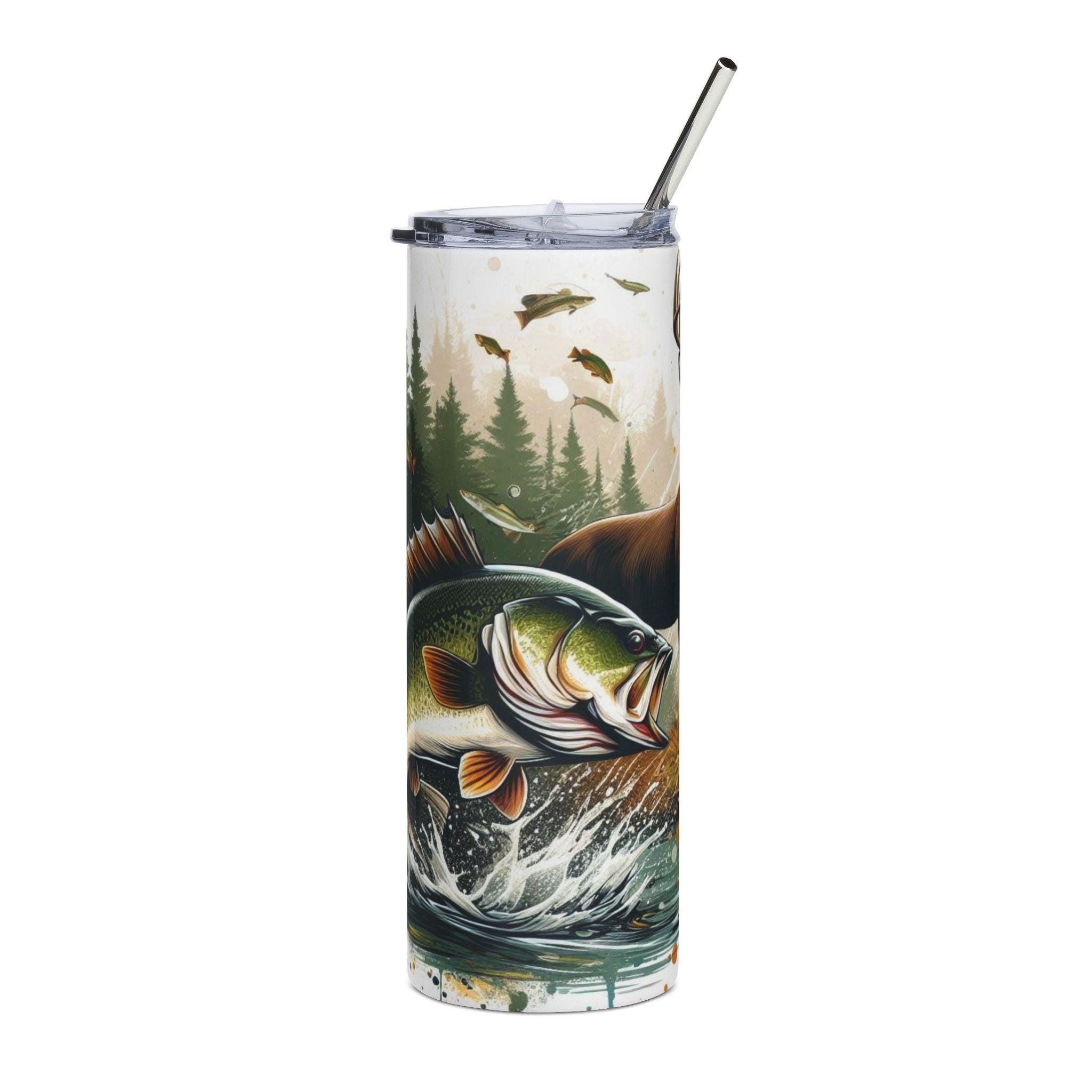 This 20 oz stainless steel tumbler carries the rush of a lake morning—cool air, splashing water, and the sudden surge of a hooked bass. The artwork wraps the full cylinder with a dynamic fishing scene: a leaping largemouth, ripple and spray, and a backdrop of pine silhouettes that feels like a hidden fishing hole at dawn. Built to travel with you, the slim profile slips into cup holders and fishing vest pockets while the secure lid and included straw make slow sips and quick gulps equally easy. It’s for anglers who want their gear to reflect the chase—the sound of water, the thrill of the strike, and the quiet of cedar-lined shores.
